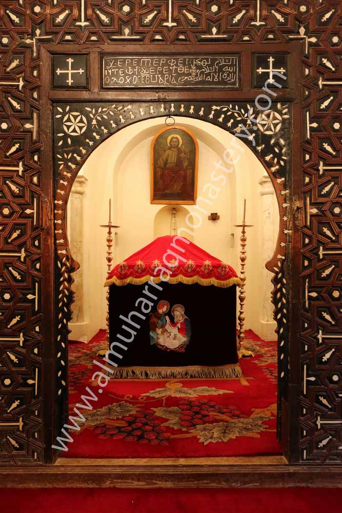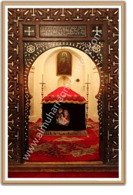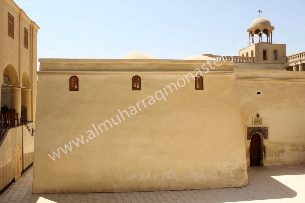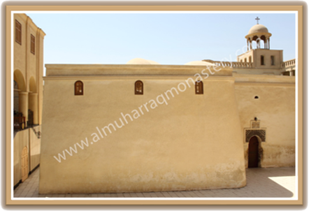 This church is the oldest in the monastery and is unique in its simple structure, taking into consideration the maintenance, repairs and modifications that have been made through the history of the church. It cannot be categorized under the geometrical style of the architectural art of any Coptic churches. In other words, it is distinguished by its simple and unsophisticated - not factitious - architectural structure. It is built of sun - dried brick. Its walls are unsymmetrical and unsystematic. There are no ornamental ancient Coptic patterns, engravings, dappling, variegations or drawings on its walls...etc.