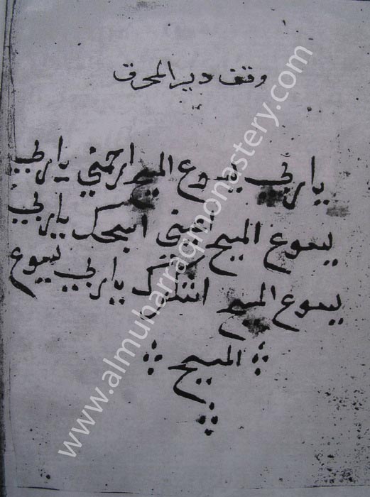 The study has revealed that the righteous monks, who had lived in Al-Muharraq Monastery, had approved the oldest form of Biblical short prayer allowing the individual monk to add the phrases that he might see a clue to saving his soul. Some of these forms have been found in the folds and margins of manuscripts held in the monastery: